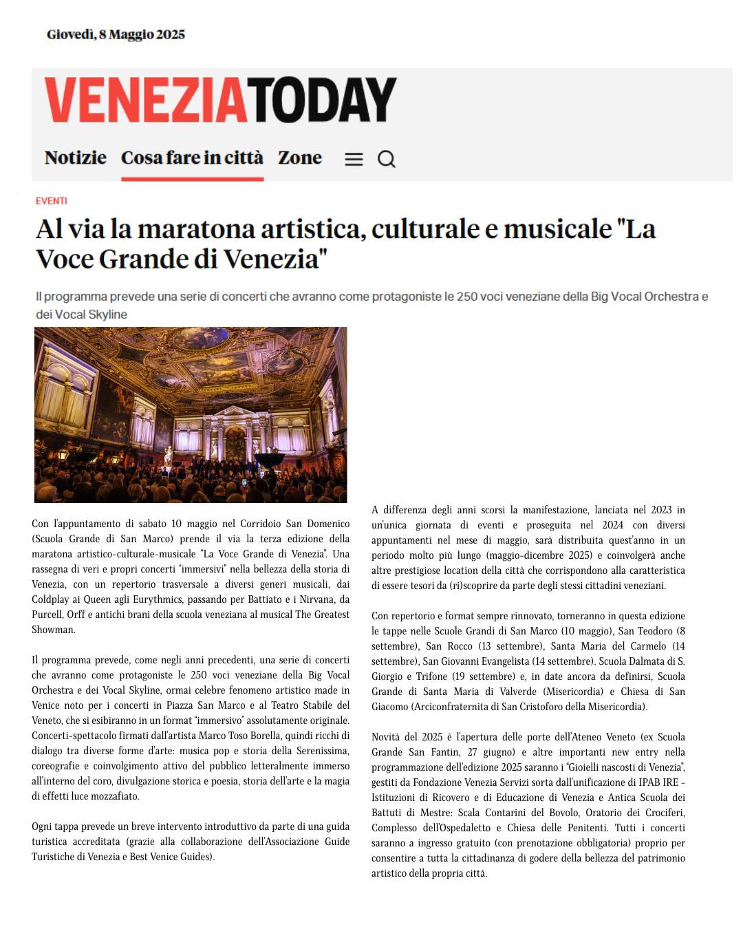 Rassegna Stampa La Voce Grande di Venezia